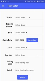 Based on the information collected from the stakeholders, few modules of an innovative fish catch mobile app was developed to systematically record real time marine fish catch data from 51 landing centres across three districts of Andaman and Nicobar Islands. User authentication login page was developed to allow registered users to login to the site and update catch data. The app integrated with web server and MySQL data base server to store and retrieve data on real time have the ability to collect species-wise total catch landed at landing centre, vessel information, fisherman details, fishing effort and gear details. Images and main features of 35 commercially important fish species belong to 3 different groups viz. Pelagic, demersal and oceanic fisheries are available in the app to identify the fishes. This will facilitate to bring all scattered catch data under one roof so that researchers and planners can use this real time data for policy decision. |
