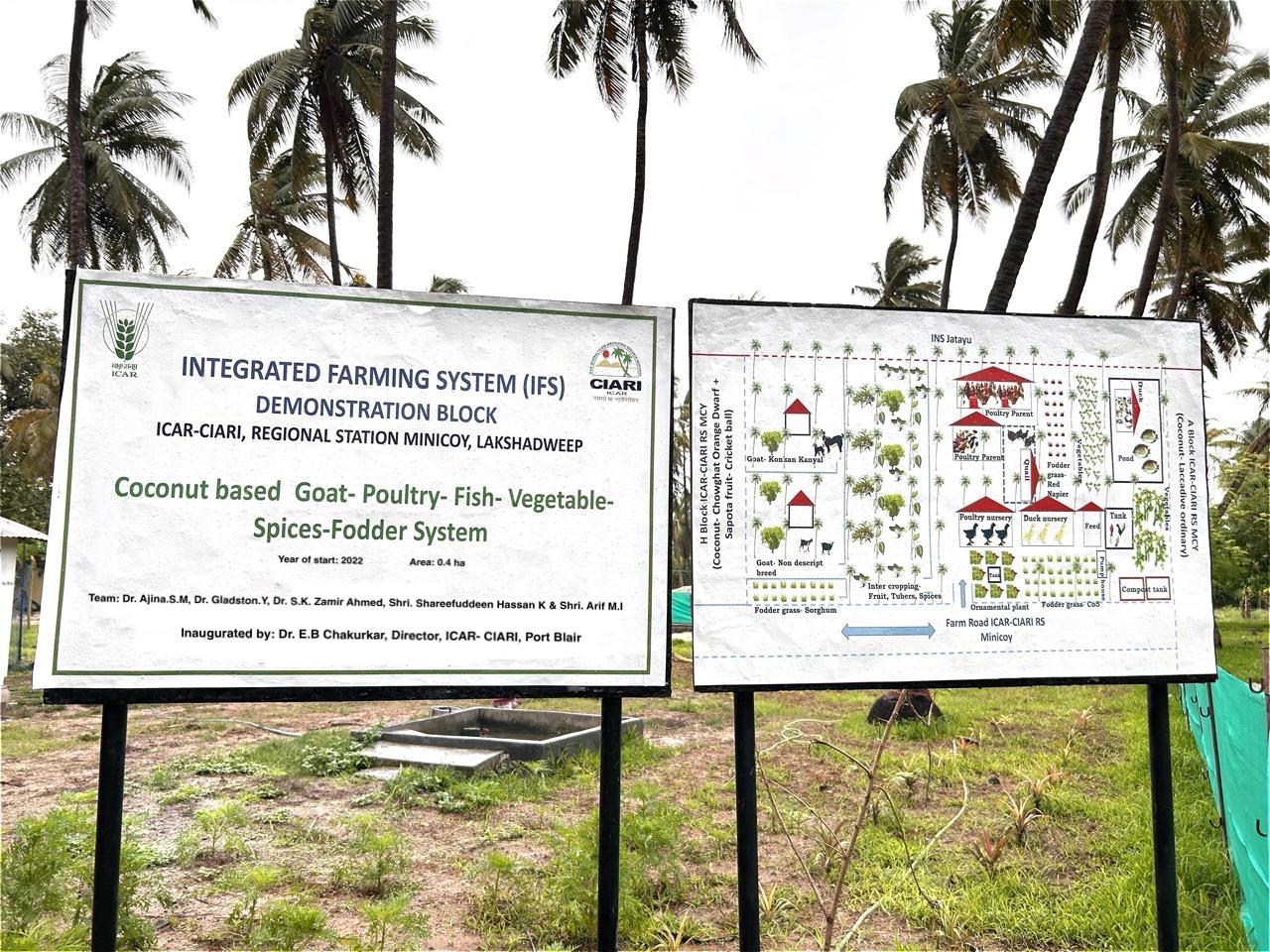 | Exploration of fishery, biology and market potential of tuna resources of Minicoy Islands (Project code: HORTCIARISIL202200200231) The Scombrid fish belonging to Tribe Thunnini, are known as tunas. Globally the fishes are commercially exploited by means of mechanized fishing fleets from the high seas. The Lakshadweep Islands, a major tuna hub of India, harvested the resources using traditional pole and line method. The present project surveyed and collected the operational data of pole and line fishery from 55 lanchi (fishing vessels) from 11 villages of Minicoy. The fishers of Minicoy started there fishing season from September 2022. The community-based resource management rules by the village moopans followed by each and every fisher. The live bait used for the fishery changes with season. An observation made during September 2022 to December 2022, found that “Hondali” and “Rehi” as bait fishes. A total of 122 fishes were dissected for the biological studies during the period. It was found that the megalopa, squid, Acetes shrimps, Digested fishes, baits are the major food item during the period Integrated Farming System (IFS) for enhancing sustainable Livelihood of rural tribal community of Minicoy Islands (Project code: HORTCIARISIL202200300232) The layout of model IFS plot was prepared with the goat as animal component, duck as bird component, Tilapia as fish component and vegetables as plant component. The one-acre area of A block was ploughed, weeded and separated with live fencing using Gliricidia plants. The temporary sheds were constructed for accommodating existing goat breed “Malabari”. The duck breeds Chera/Chempalli (07 male and 28 females),chicken breed Gramashree (50)and Sasso (100),quail (50) introduced in the system. The existing water shed pond were stocked with Tilapia mossambica. The fodder plants Sesbania, Guinea grass and Napier grass variety Co5 introduced in the IFS block. The existing farming pattern in islands is studied. |
