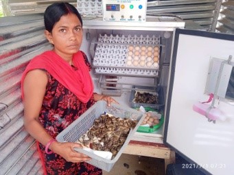 House wife turns into a farm women for sustaining livelihood security through mini incubator, goat, pig and desi birds