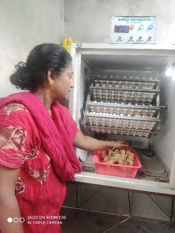 Smti. Rani Anbumalar, a resource woman for availing incubation facility of mini incubator and for elite bucks for breeding of goats