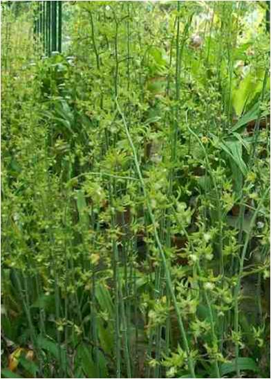Eulophia andamanensis is an endemic green orchid in bay Islands. When it is grown in pots, it should be kept in a lath house or in open under shade (55-60%) in suitable locations. It has been evaluated and identified for its potential as potted plants owing to its good quality and other features like long spikes with many green florets.
