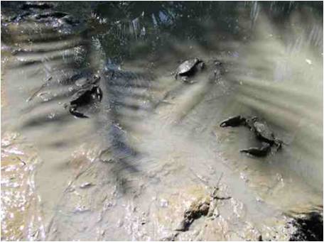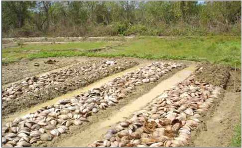 The present technology can be suitable in brackish water areas where water level can be maintained around 75 cm. Grow-out ponds can be constructed in tidefed estuaries, backwaters and creeks. The crab ponds can also be established in traditional fish/ shrimp farms, by converting one portion adjoining the brackish water canal, which would help increase the overall income of traditional fish/ shrimp farmers. A 2 feet high bamboo fencing on the bund is essential to prevent escape of crabs from the pond. A pond of 0.1 ha area can be used for mud crab culture. With 500 nos /ha stocking density of 50-60g size crab for a period of six months, about 780kg/ ha production can be achieved.