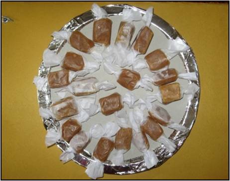 For toffee preparation, pulp was extracted from mango fruits, heated till it reaches 1/3 of the quantity. Added sugar (700g) and glucose (100g) and continuously heated till it reduced to 1/3 of the total quantity. 150 g of milk powder and butter was added and stirred continuously till the end point. After that it was spreaded into the trays and allowed for drying. The toffee thus prepared was cut into pieces and wrapped with butter paper cover for storage study. The stored samples were analyzed at fifteen days intervals for their sensory and biochemical evaluation. The results revealed that the leather dried under mechanical dryer took 10.5 hours whereas solar dryer took 15 hours for drying and 24 hours in open sun drying. The toffee dried under solar dryer took two hours for drying while open condition took 5 hours for drying. The moisture content and TSS of both the produce were decreased with the advancement of storage period while the total sugar content was increased during storage. The organoleptic evaluation of the products shows that mango toffee had excellent flavour, texture, taste and overall acceptability when compare to mango leather.