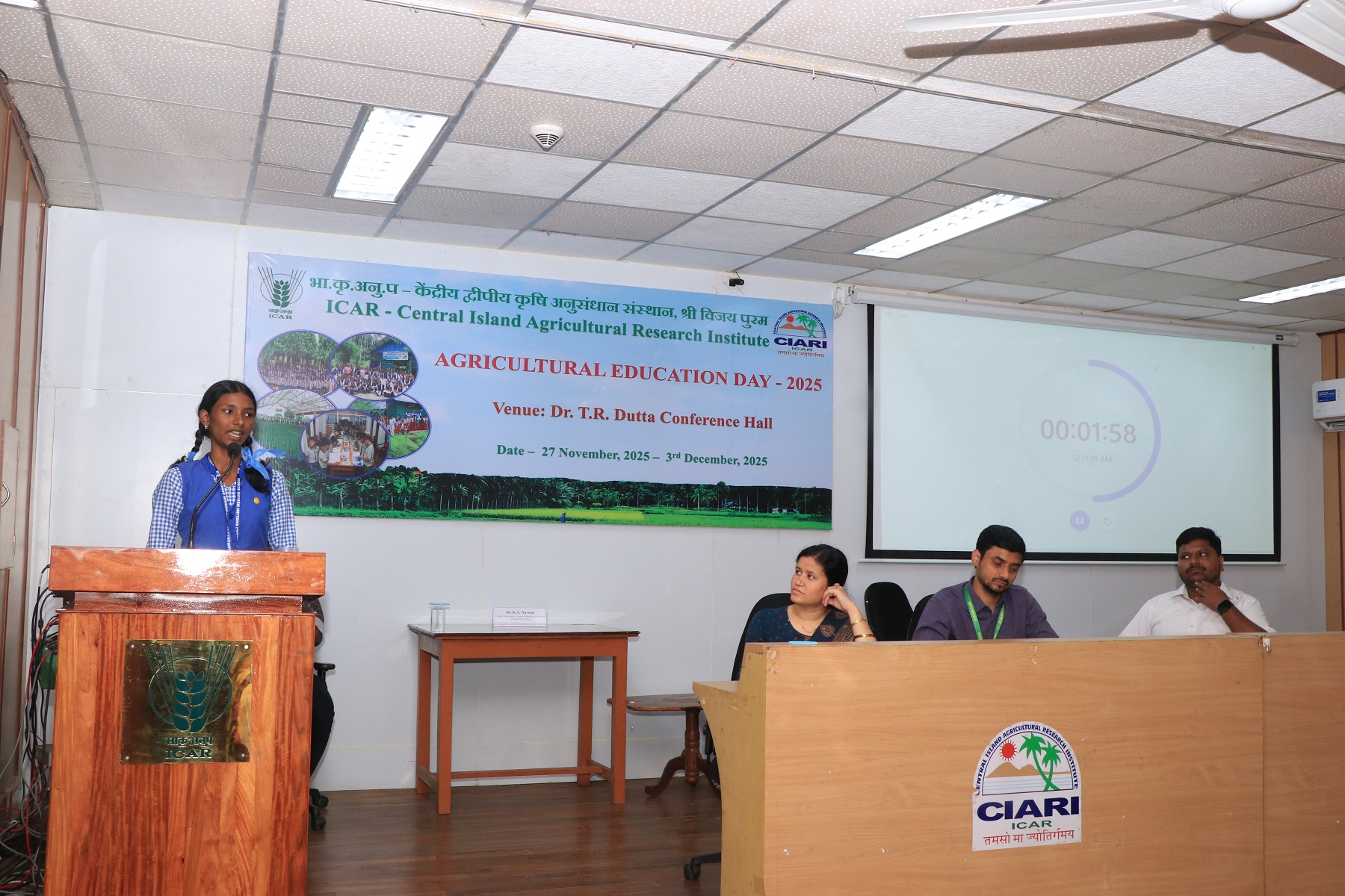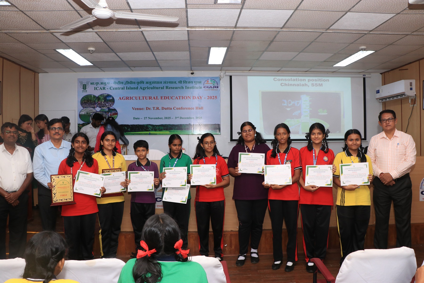 ICAR-CIARI celebrated "Agriculture Education Day" on December 3, 2025, in honor of Dr. Rajendra Prasad's birth anniversary, who was the first President of India and the Union Minister of Agriculture. To mark this occasion, ICAR-CIARI organized a series of events for school students from November 27 to December 3, 2025. On November 27, 2025, a drawing and painting competition themed "Agricultural Farms in 2047" was held for students in grades 5 to 8. The following day, November 28, 2025, a quiz competition was conducted under the theme "Agriculture Basic & General Knowledge" and on December 1, 2025, an elocution competition took place with the theme "Role of Agriculture in Making India a Developed Nation" for students in grades 9 to 12. A total of 120 students participated, representing 12 schools including Ummat Public School, Vivekananda Kendra Vidyalaya, Kamaraj English Medium School, PM Shri Kendra Vidyalaya – No. 1 & No. 2, Nirmala Senior Secondary School, Government Sr. Secondary School, Haddo PM Shri Govt. Sr. Secondary School, Garacharma, Carmal Sr. Secondary School, Khalsa Public School, Navy Children School, Saraswati Shishu Mandir Senior Secondary School, and St. Mary's School, Bathu Basti.