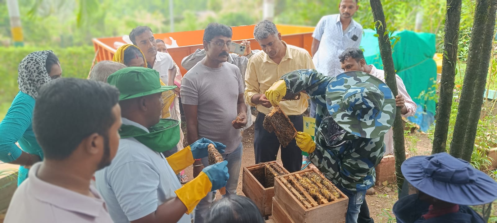 A five day training program on "Apiculture for Beginners" was conducted at ICAR-Krishi Vigyan Kendra (KVK), Sippighat, South Andaman, from March 6 to March 10, 2025. The program was organized by the CSIR-National Botanical Research Institute (CSIR-NBRI), Lucknow, Uttar Pradesh, in collaboration with Department of Agriculture, Andaman and Nicobar Administration, Port Blair and ICAR-Central Island Agricultural Research Institute (ICAR-CIARI), Port Blair. The training was funded by CSIR-NBRI under the CSIR- Floriculture Mission (phase –II). A total of 32 farmers nominated by the Department of Agriculture and 11 self-motivated farmers from three blocks of South Andaman participated in this program. The inaugural session was graced by Dr. E. B. Chakurkar, Director, ICAR-CIARI, as the Chief Guest. He emphasized the importance of increasing honey production in the Andaman and Nicobar Islands. The training covered various aspects of beekeeping, including Introduction to Apiculture – Types of honeybees, bee rearing techniques, and colony management by Dr. Y. Ramakrishna (Principal Scientist & Head, KVK).Importance of Bee Flora in Apiculture – A lecture by Ms. Sushma (Subject Matter Specialist, Horticulture).Pest and Disease Management in Beekeeping – Session by ShriMohit (Subject Matter Specialist, Plant Protection).Practical Demonstration – Handling of bee boxes and hive management by ShriThanmai Paul (Farm Manager, KVK).The valedictory session, held on March 10, 2025, was graced bySmt. PallaviSarkar, IAS, (Secretary of Agriculture, Andaman and Nicobar Administration) as the Chief Guest, along with Dr. Ajit Kumar Shasany (Director, CSIR-NBRI, Lucknow) and Dr. E.B. Chakurkar (Director, ICAR-CIARI).A tri-partite MOU between Department of Agriculture, Andaman and Nicobar Administration, Port Blair and ICAR-Central Island Agricultural Research Institute (ICAR-CIARI), Port Blair and CSIR-National Botanical Research Institute (CSIR-NBRI), Lucknow, Uttar Pradesh was also signed and exchanged to promote floriculture activities in the bay islands. During the interactive session, farmer trainees discussed key challenges in beekeeping. To support the farmers, 200 bee colonies were distributed among the nominated participants during the closing ceremony.The program was coordinated by Dr. Y. Ramakrishna (Principal Scientist & Head, KVK) and Dr. Soumit Kumar Behera (Senior Principal Scientist, CSIR-NBRI, Lucknow). The event concluded with remarks by Dr. Sandip Kumar Behera (Senior Scientist, CSIR-NBRI) and was moderated by Mr.Mohit (Subject Matter Specialist, KVK, South Andaman).A total of 43 trainees (28 men and 15 women) benefited from the training,This initiative marks a significant step toward strengthening beekeeping practices in the Andaman and Nicobar Islands, promoting bio-diversity, sustainable honey production, and enhancing farmers' livelihoods.