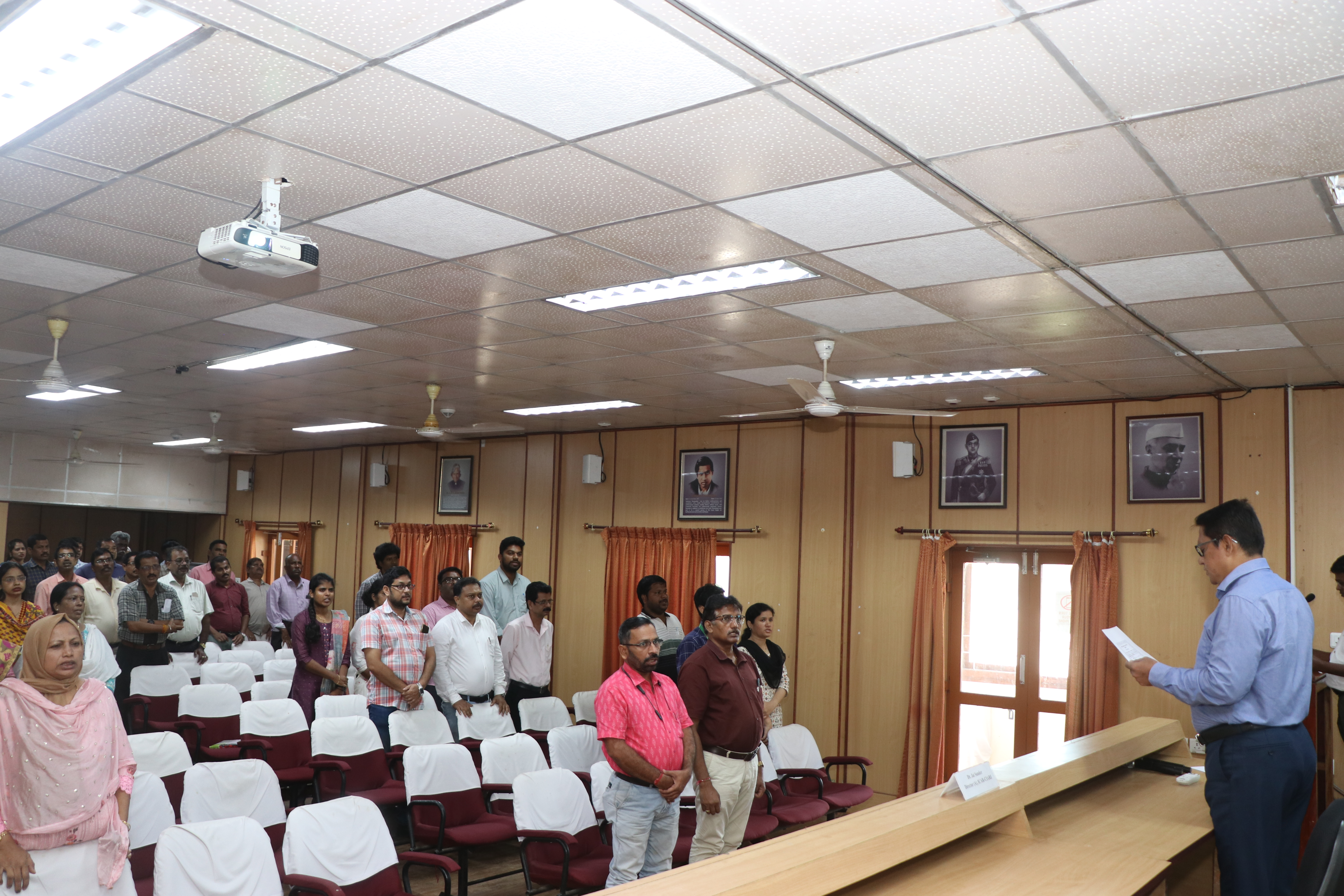In celebration of the 75th anniversary of the adoption of the Constitution of India, Constitution Day (Samvidhan Diwas) was celebrated with great enthusiasm at ICAR–CIARI, Sri Vijaya Puram, along with its Regional Station at Minicoy and KVKs located in South Andaman, North & Middle Andaman, and Nicobar. The event began with a Pledge-Taking Ceremony that took place on 26th November 2025 at 11:00 AM in Dr. T.R. Dutta Hall, ICAR–CIARI. Staff from all categoriesincluding Scientific, Technical, Administrative, Supporting personnel, Research Scholars, and Contractual staff were participated in the ceremony, taking the pledge in both English and Hindi, thereby reaffirming their dedication to the principles enshrined in the Constitution.
