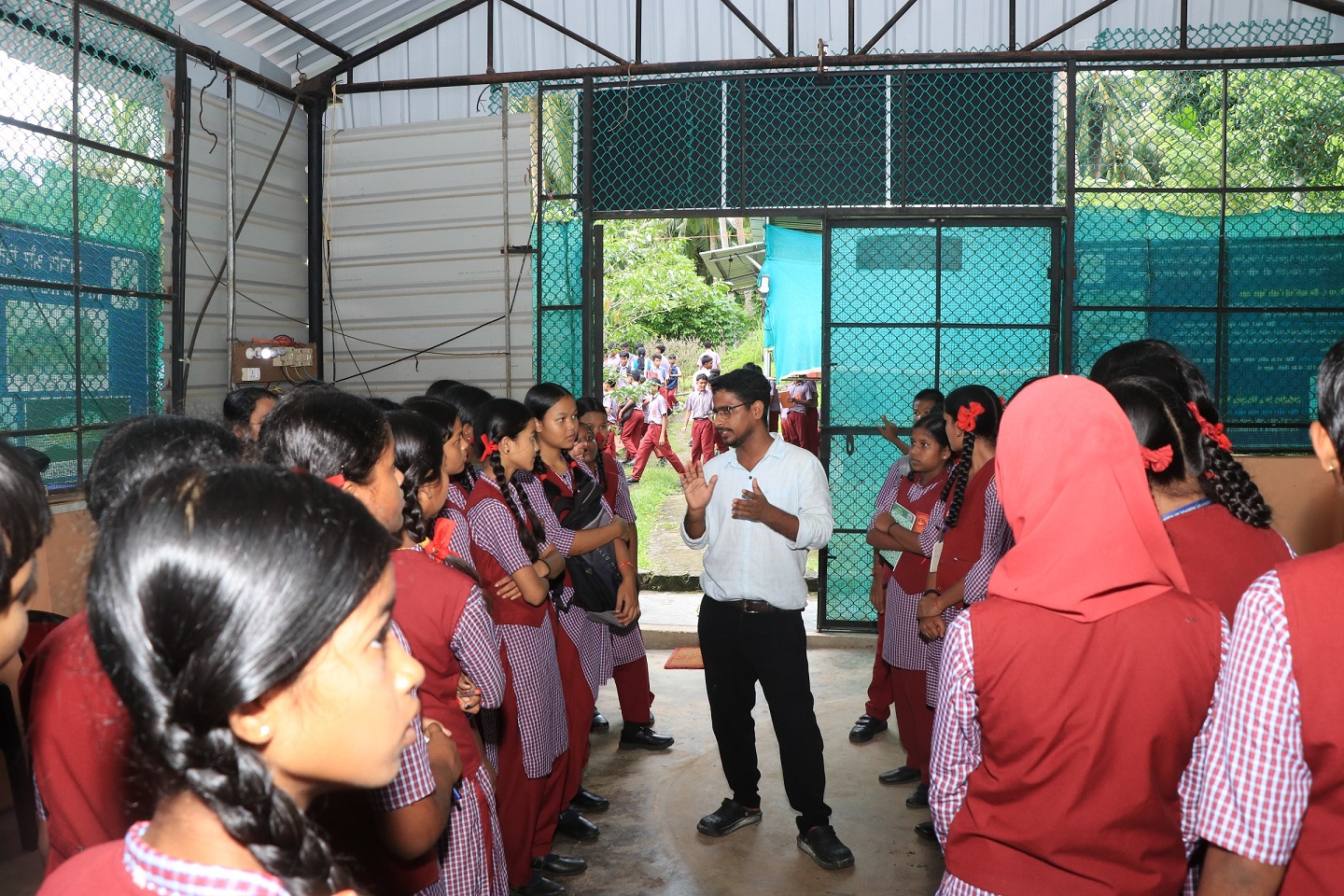 On September 8, 2025, a total of 145 students from Govt. Sr. Secondary School, South Point, Sri Vijaya Puram, accompanied by eight teachers, visited on a study trip to the Garacharma Research Complex of ICAR-CIARI, Sri Vijaya Puram. The purpose of this visit was to gain insights into the latest research and advancements in agriculture and related sectors. Shri Chittaranjan Raul, a Scientist, presented an overview of the Freshwater Ornamental Fish Culture Unit at Garacharma, which features breeding and rearing facilities for aquarium fishes, including Guppy, Molly. Furthermore, he elaborated on how ICAR-CIARI offers comprehensive packages of practices aimed at production for the farmers of the Islands.
