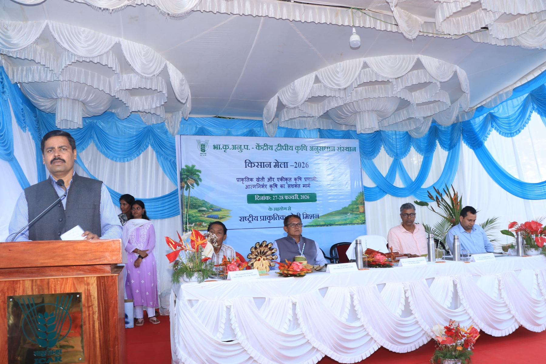 Tribal Chief Shri Lionald Nicomed from CTC, Car Nicobar, expressed his sincere gratitude to the organizers for conducting the Kisan Mela for the benefit of farmers, especially tribal farmers. He appreciated ICAR–CIARI for bringing scientific knowledge and practical technologies directly to the grassroots level. He noted that such programmes provide valuable exposure, improve awareness, and help farmers enhance their productivity and income. He hoped that more such initiatives would be organized regularly to strengthen the livelihoods of farming and tribal communities in the islands.