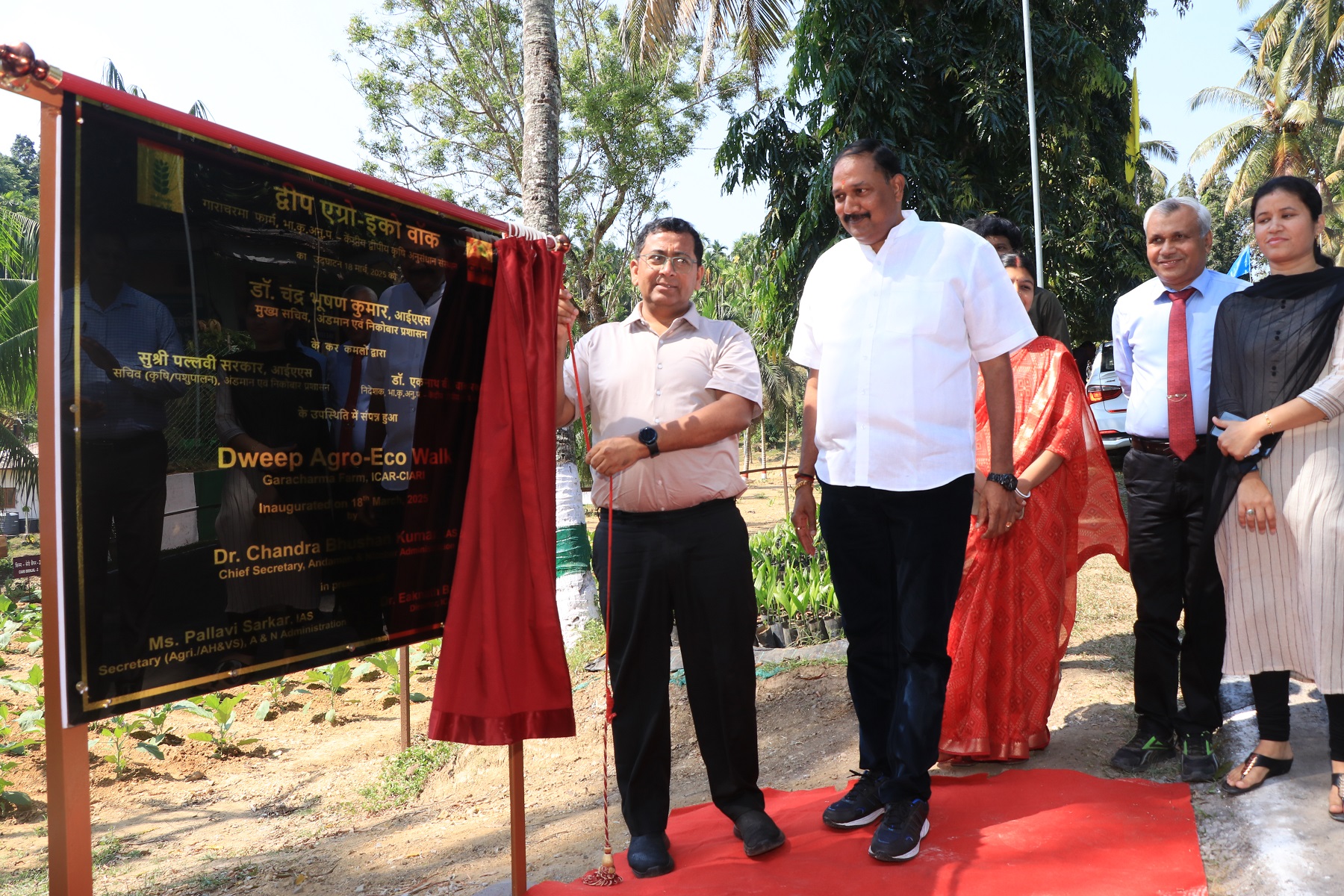 ICAR-CIARI, with its KVKs, inaugurated the Dweep Agro-Eco Walk, an agro-eco-tourism initiative at its Horticulture Farm in Sippighat, and the two-day Kisan Mela-cum-Exhibition at its Garacharma farm on March 18th, 2025, at the Mela ground within the Garacharma Research Complex. Dr. Chandra Bhushan Kumar, IAS, Chief Secretary of the Andaman and Nicobar Administration, inaugurated the Dweep Agro-Eco Walk in the presence of Ms. Pallavi Sarkar, IAS, Secretary of Agriculture and Animal Husbandry. The tree planting of coffee trees was also carried out by the Chief Secretary and the Secretary of Agriculture at the Horticulture Farm in Sippighat.