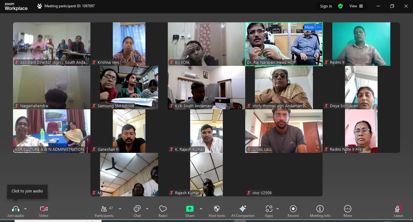 An Online Training Programme on the Packages and Practices of Major Crops for the Andaman and Nicobar Islands was inaugurated today, marking the beginning of a three-day session focused on agricultural advancements and best practices for crop production in the region. The programme, held from December 2nd to 4th, 2025, is aimed at enhancing the knowledge and skills of agriculture officials and field workers in the region. The event was inaugurated virtually by the Director of the Central Island Agricultural Research Institute (CIARI), Sri Vijaya Puram, who delivered the inaugural address, emphasizing the importance of continuous learning and capacity building in agricultural practices to improve crop productivity and sustainability in the Andaman and Nicobar Islands. Mrs. Sri Dewi, Joint Director of Agriculture, highlighted the Environmental issues and region-specific farming practices that are tailored to the unique climatic and geographical conditions of the islands. The Organizing Secretary, Dr. Raj Narayan, Principal Scientist and Head of Horticulture and Crop Improvement, CIARI, welcomed all participants and outlined the importance of the training programme. The scientific team from CIARI, including Dr. P K Singh, Principal Scientist, Dr Y Ramakrishna, Head of KVK, South Andaman, Dr. Santosh Mishra, Head of KVK, Nicobar and Dr. Prabhu P, Scientist, CIARI, took part in the event. The event concluded with the Proposed Vote of Thanks by Dr. P K Singh, Principal Scientist, CIARI, who expressed gratitude to all the dignitaries, participants, and organizing team members for their valuable contributions to the success of the programme. The training programme is expected to enhance the capacity of the agricultural community in the Andaman and Nicobar Islands, enabling them to implement improved crop management techniques, promote sustainable farming practices, and ultimately contribute to the region's agricultural growth.