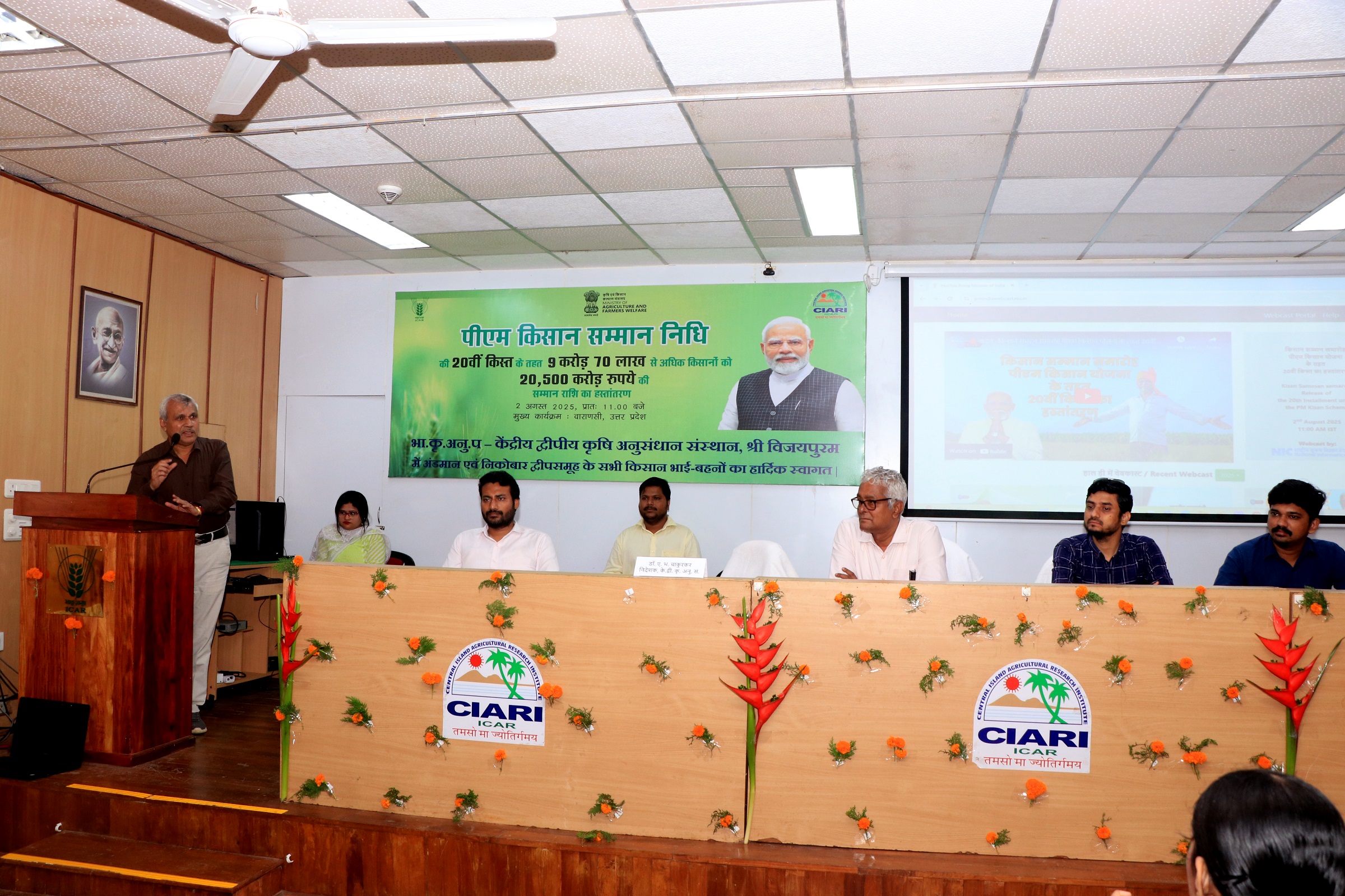 On August 2, 2025, the ICAR Central Island Agricultural Research Institute (CIARI), Sri Vijaya Puram, successfully organized a farmer-scientist interaction along with the live streaming of the PM Kisan Samman Nidhi programme at the T.R Dutta Conference Hall, CIARI. The occasion was marked by the active participation of local farmers and the display of technological innovations developed by ICAR-CIARI for the benefit of the island’s farming community.