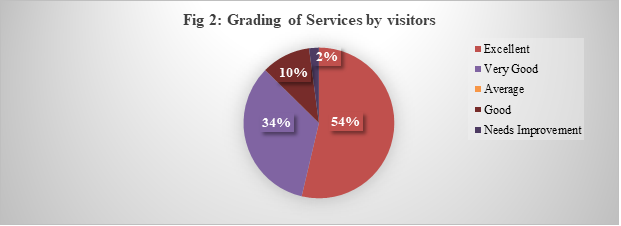 | Among the visitors 54% appreciated the services of the Institute by giving Excellent grade, followed by 34% Very Good, 10% good and 2% visitors Needs improvement . | |||||||||||||||||||