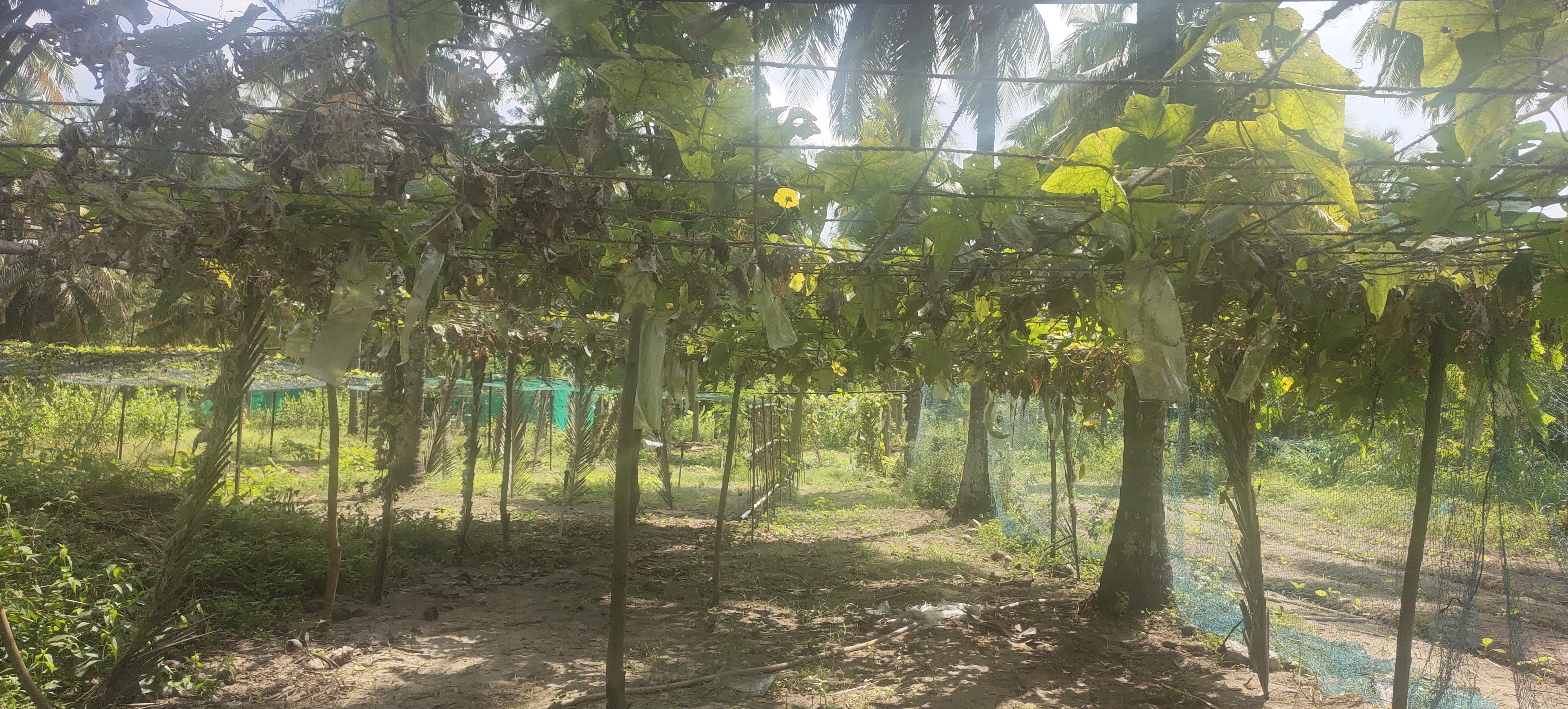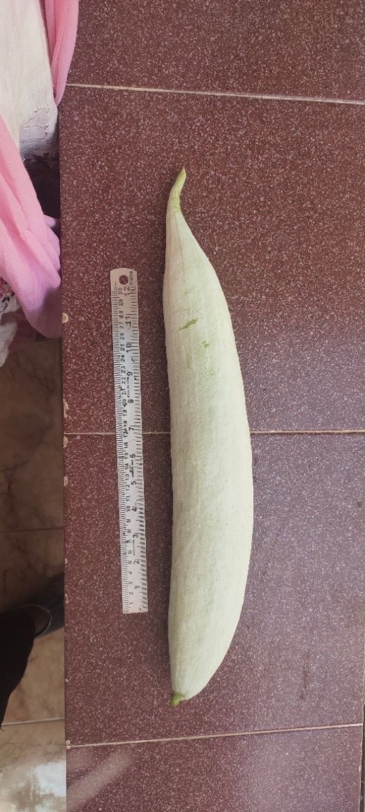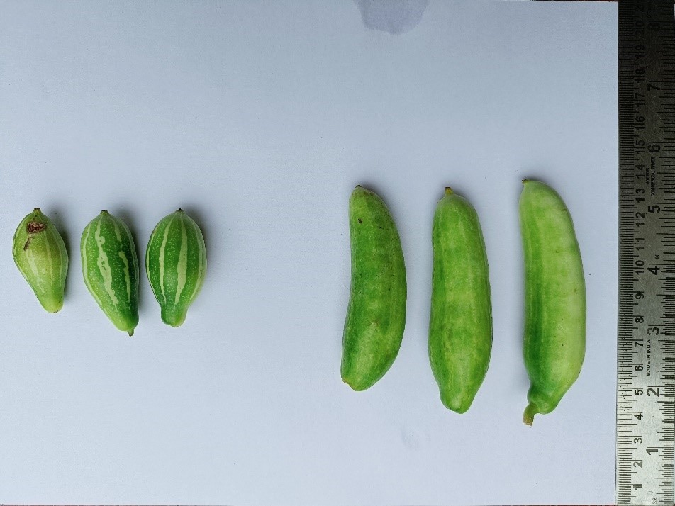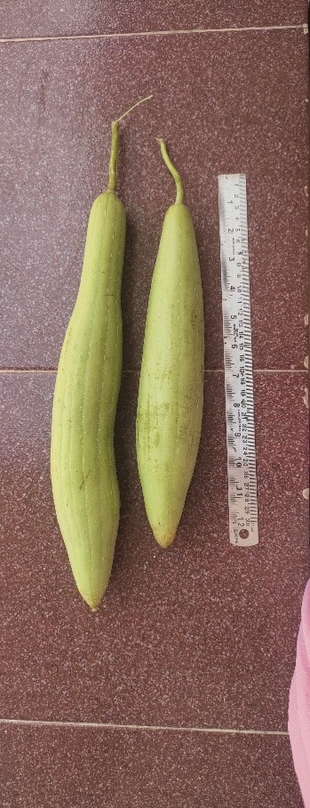 “Fulatholi” the snake gourd is one of the cucurbit crop with consumer preference in Minicoy. The hybrid seeds of variety baby snake gourd “Yuva”-baby short was tested in field of ICAR- CIARI, Minicoy for the performance evaluation in Lakshadweep under semi protected cultivation system in “Pandal” of area 20 Sq. m. The pits were made with the dimension of 60X60X100 cm and filled with cow dung manure of 2 kg/ pit, and organic micro nutrients (500g/pit), Two seedlings were planted in each pit of distance 50cm apart. The yield was 1.04 kg/ Sq.m