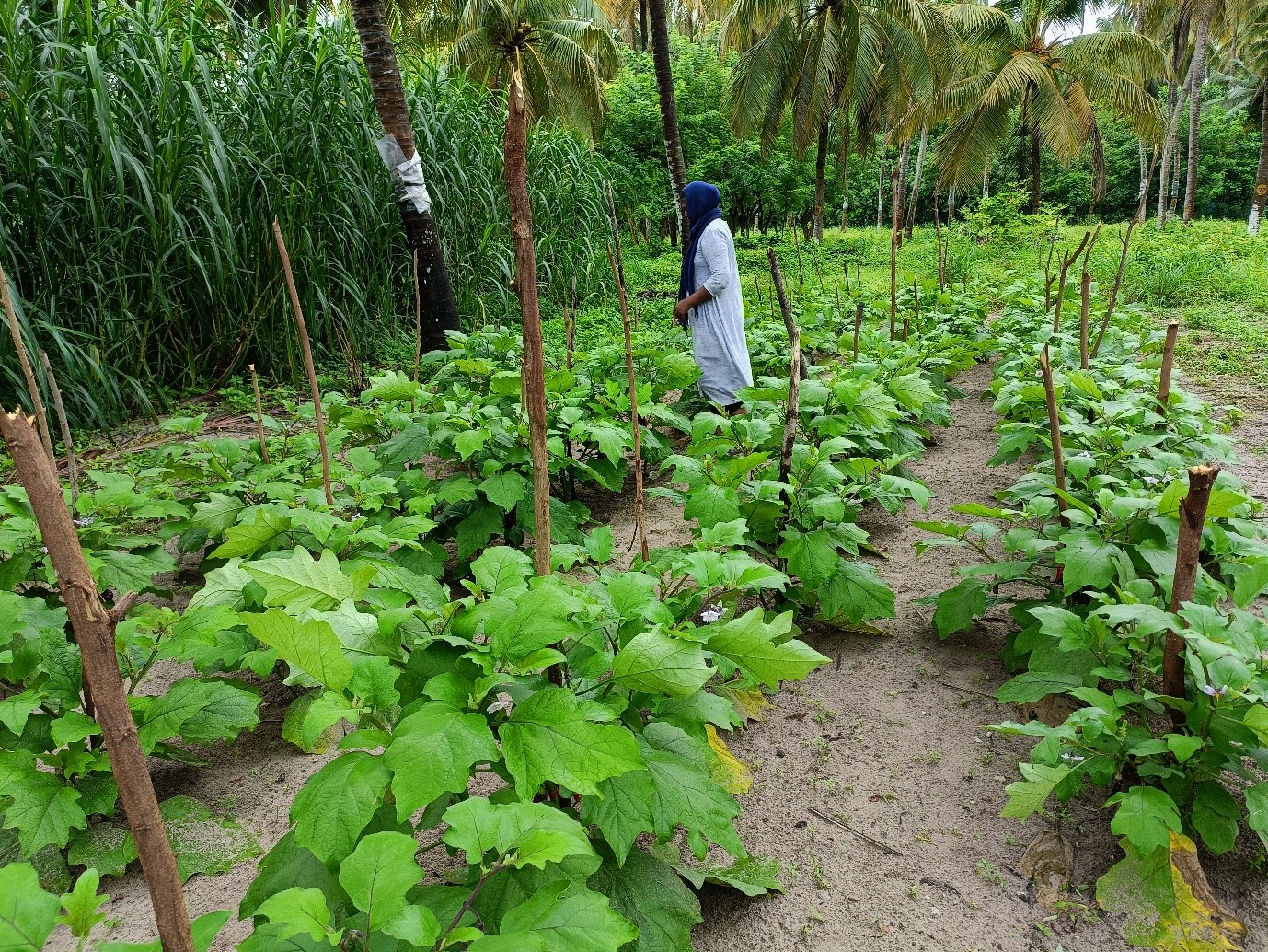 | Intercropping of vegetables and fruit plants (tomato, chilly, brinjal, cabbage, cauliflower, cucurbits, papaya, sapota, fodder and exotic fruit plants) under coconut cultivation |