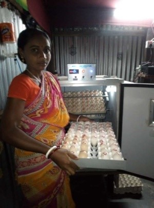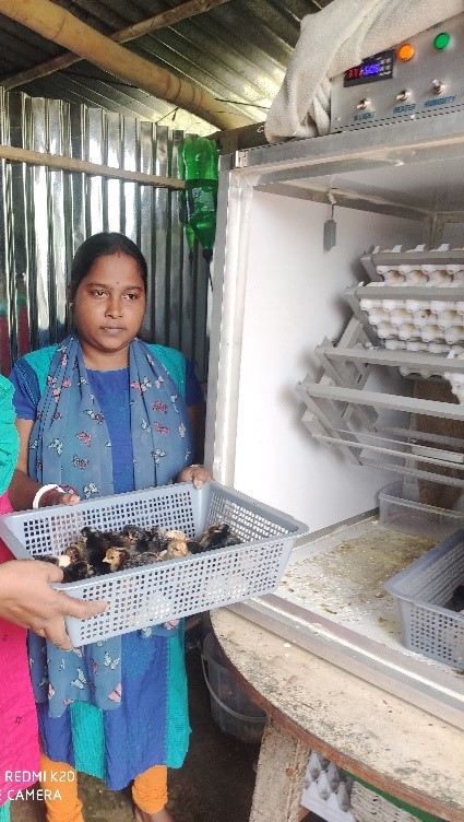 House wife turns into a farm women for sustaining livelihood security through mini incubator, goat, pig and desi birds