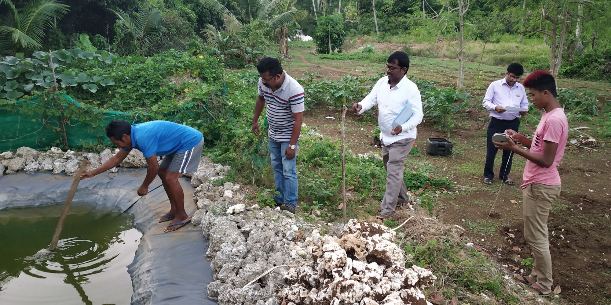 Lined pond for rainwater harvesting for multiple use at Car Nicobar