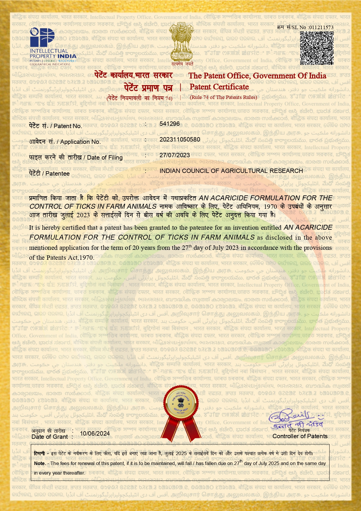 ICAR-CIARI commercializes 'Dweep tickure'- a herbal based formulation for control of ticks in livestock