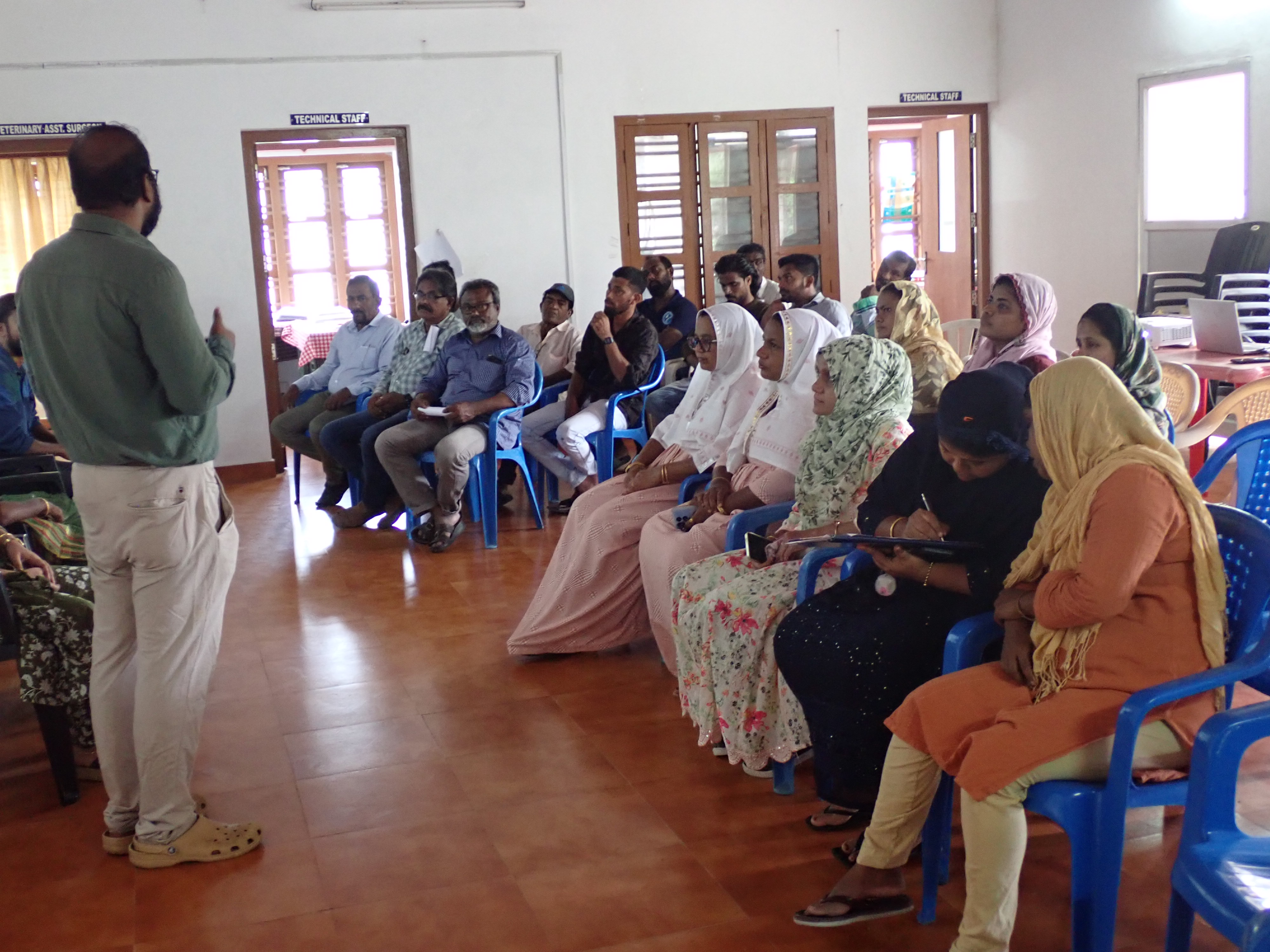 Speaking on the occasion, Dr. Gladston Y, In-charge, ICAR-CIARI Regional Station, Minicoy, welcomed the gathering and shared his impressions about the campaign. He interacted with the farmers and shared his experiences regarding various activities and technologies of the station, including the use of artificial intelligence in precision farming. The scientific team, Dr. Ajina S.M., interacted with the farmers and provided advisories on fisheries during the monsoon as well as alternative options to increase fish production sustainably. Dr. Thoufeera M.K, Veterinary Surgeon, interacted with the farmers and shared her experiences with poultry and goat farming during the upcoming monsoon. Shri Shareefuddeen Hassan, Technical Officer, shared his insights on agriculture and horticulture practices suitable for the kharif season. Shri Arif M.I., Senior Technician and Coordinator of the programme, explained technical know-how and practices to the participants in Mahl (the local language). At the end of the event, inputs such as vegetable kits were distributed to the farmers. The distribution was attended by officials from the Department of Veterinary and Animal Husbandry, including Dr. Thoufeera M.K, and farmers from different village clusters. In total, 14 male and 16 female farmers received inputs, and 35 people attended the programme.