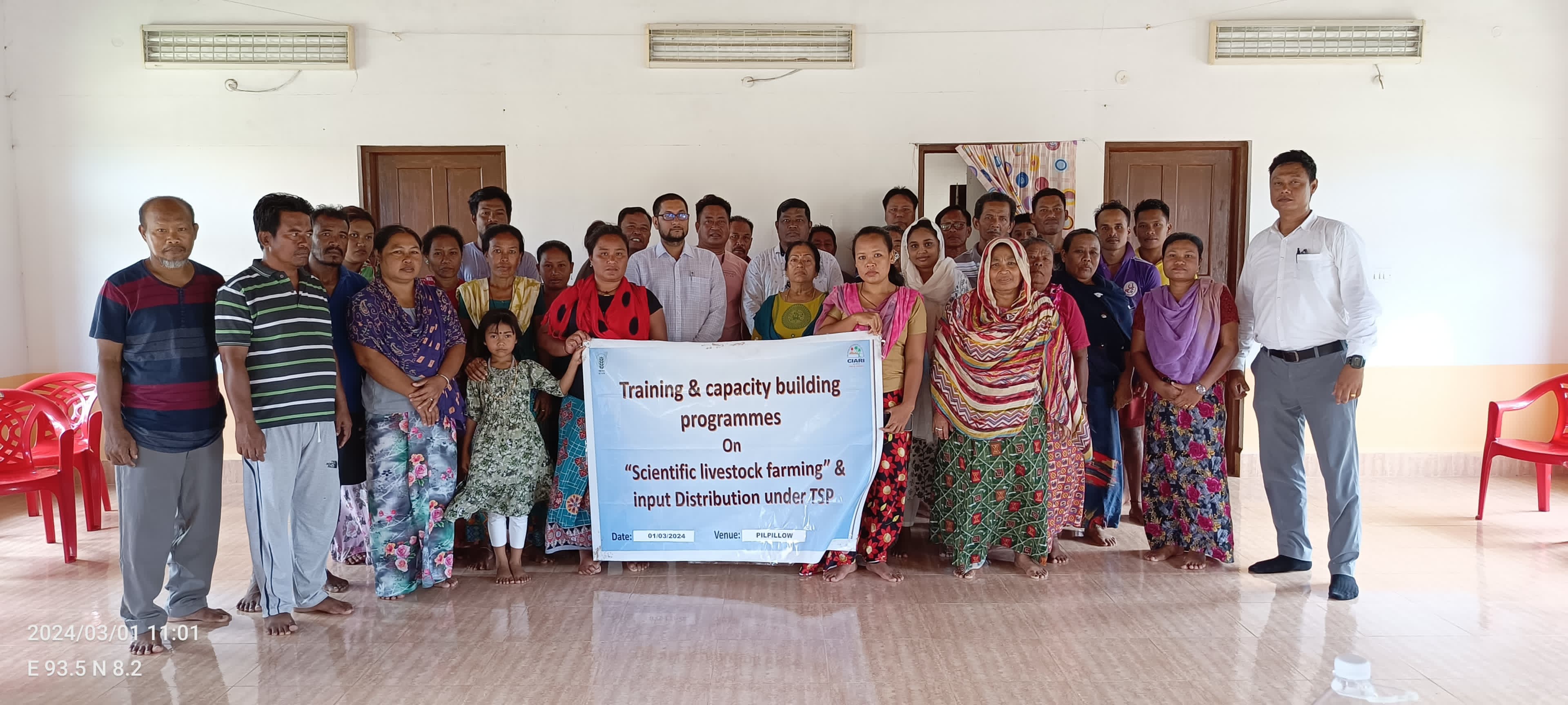 A series of capacity building programme under Scheduled Tribe Component (STC) was organized by ICAR-Central Island Agricultural Research Institute, Port Blair at Nancowry, Nicobarin collaboration with DAHVS, A & N Administration from 28th February to 1st March, 2024. The theme of the training was “Climate resilient scientific livestock farming”. The trainers were Dr. Arun Kumar De, Senior Scientist, Animal Science Division of ICAR-CIARI along with Dr. Sabita Wati, Senior Veterinary Officer, Veterinary Hospital Kamorta, Department of Animal Husbandry & Veterinary Services. Inauguration of the training programme was organized on 28th February at Community Hall, Kamorta in which Shri. Anuj Kumar Bharti, DANICS, Assistant Commissioner, Nancowriewas the Chief Guest and Shri Charles Jacob, Chairman, Tribal Council, Kamorta was the guest of honour. All the village captains of Kamorta, Tapong, Champin and Hidui along with 56 tribal farmers of respective villages participated. The Assistant Commissioner, in his inaugural address encouraged the participants to interact with the experts and draw maximum advantage out of the programme. Shri Charles Jacob, Chairman, Tribal Council, Kamorta thanked the ICAR-CIARI and DAHVS for their efforts and urged to conduct such programmes frequently for the farmers. On 29th February, a training programme was organized at the Community Hall, Chota Enaka in which Shri Charles Jacob, Chairman, Tribal Council Kamorta, all the village captains of Chota Enaka, Bada Enaka and Vikas Nagar graced the programme. A total of 75 tribal farmers participated. On 1st March, a training programme was organized at the Community Hall, Pilpillow in which Shri Charles Jacob, Chairman, Tribal Council Kamorta, all the village captains of Kakana and Pilpillow along with 65 tribal farmers participated. In these three-days training programme, farmers were given training and awareness on different aspect of livestock farming. Inputs (livestock feed, feed supplements and gumboots) were distributed among the farmers. The SVO and all the staff of the Veterinary Hospital, Kamorta were instrumental in organising the event. The overall programme was coordinated by Dr.A.K.De, Sr. Scientists under the supervision of Dr Jai Sunder, Head, Division of Animal Science and Dr E.B.Chakurkar, Director, ICAR-CIARI, Port Blair.