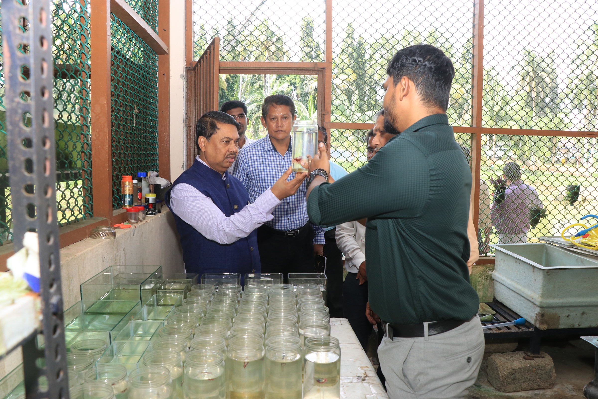 The meeting concluded with a formal vote of thanks by Dr. R. Kirubasankar, Senior Scientist, followed by a visit to the Dweep ornamental fish unit. Dr. J. Praveenraj provided insights into various native and endemic fish showcased at the unit, and Dr. Jena emphasized the need to develop a breeding protocol for a prominent ornamental species.A visit to the Marine Hill Research Laboratory followed, where Dr. Jena supervised ongoing activities, including mud crab fattening, shrimp biofloc culture, and the marine ornamental fish unit.