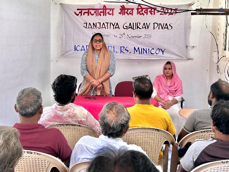 ICAR-CIARI, Regional Minicoy organized a one-day seminar on “Ongoing Schemes in the Animal Husbandry Sector” on 9th November 2025 to create awareness among livestock farmers about various government initiatives and support programs. Dr. Thoufeera M.K., Veterinary Assistant Surgeon, Animal Husbandry Unit, Minicoy, delivered an informative lecture highlighting different schemes, their benefits, and procedures for availing them. The session helped farmers understand opportunities to enhance livestock productivity and income through scientific interventions and government assistance. The participants actively interacted with the resource person, clarifying their queries on scheme implementation and eligibility.