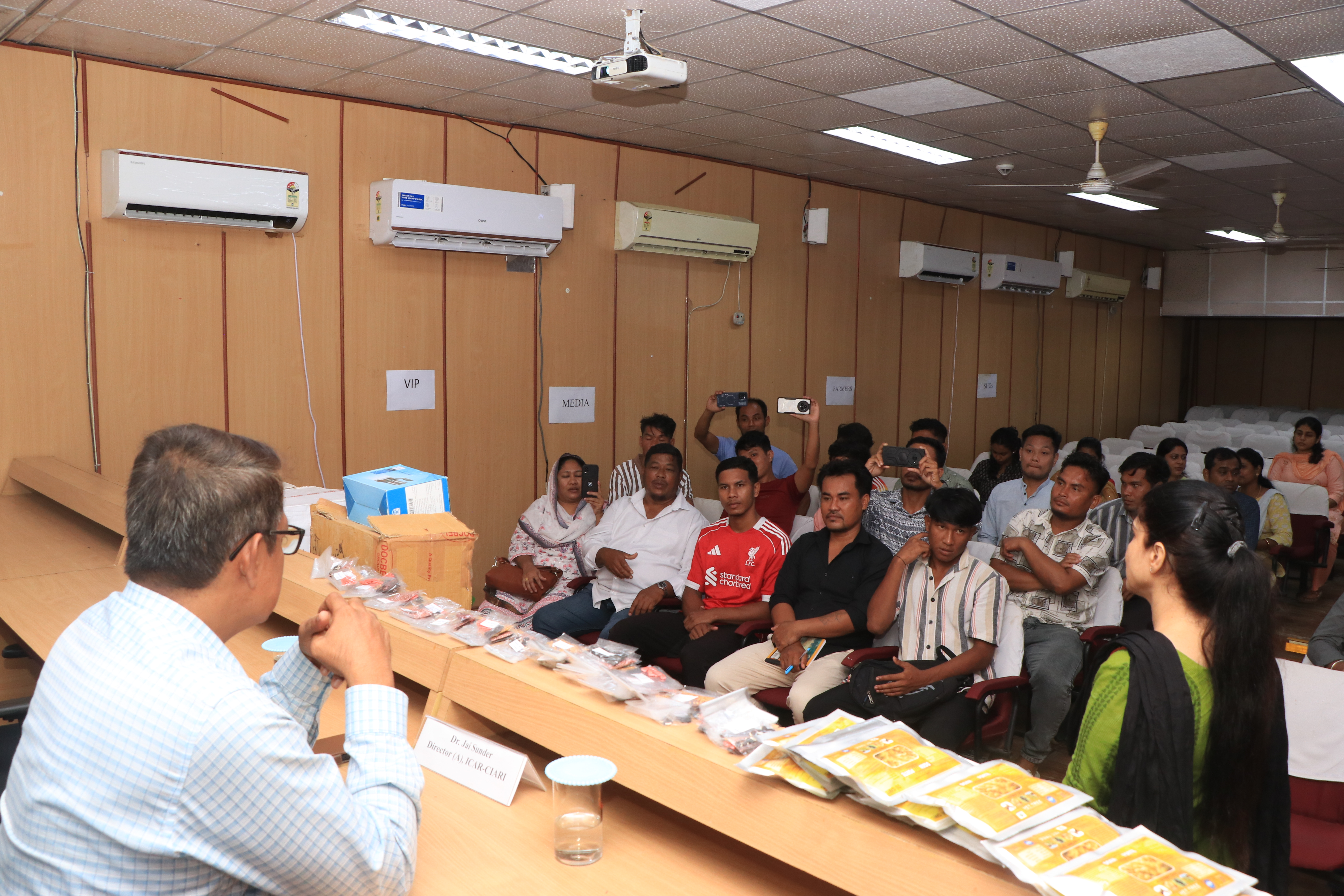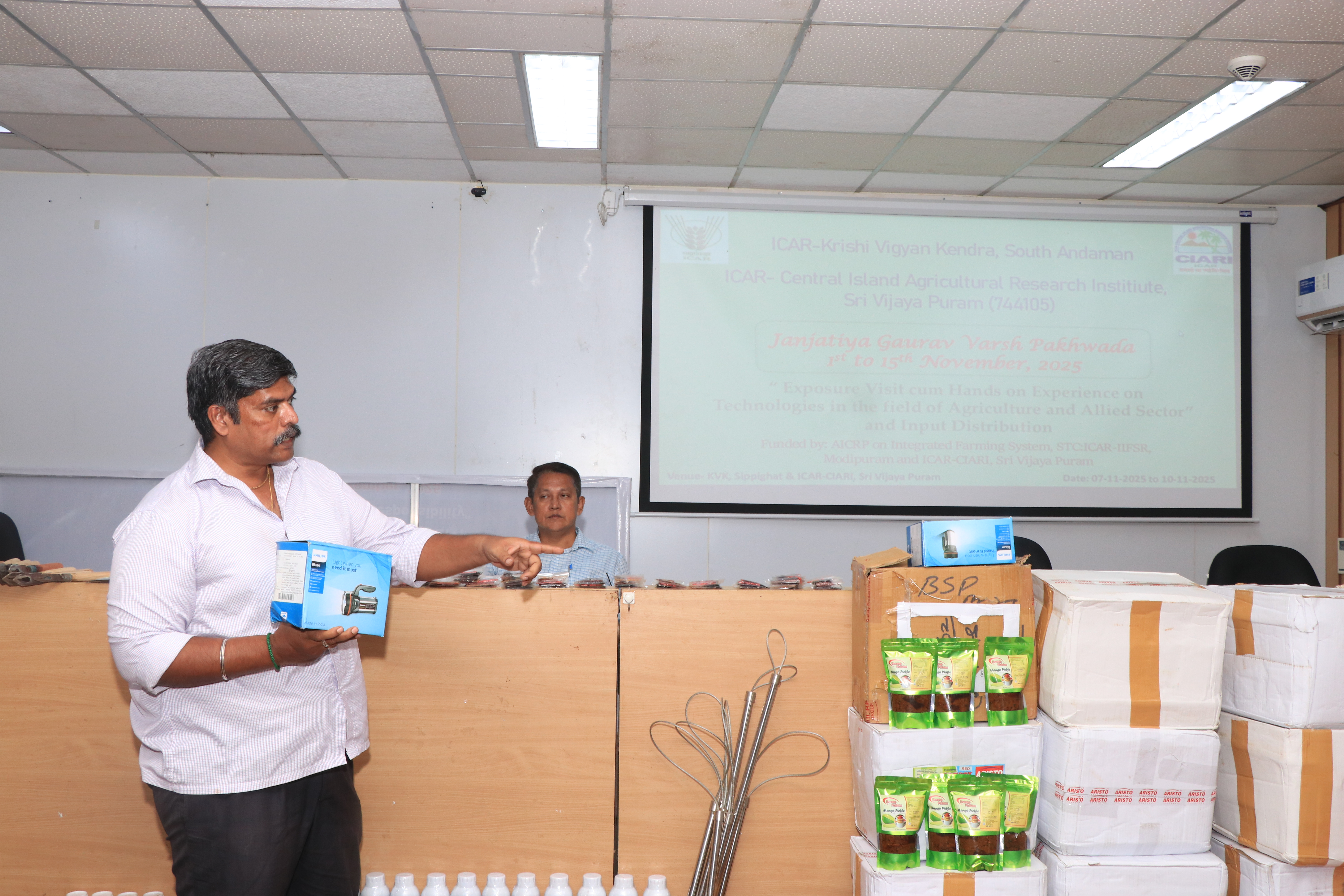 The digital awareness materials, technological bulletins, folders repository maintained by ICAR-CIARI was discussed and created the awareness among the farmers for adopting advances scientific cultivation methods. The farmers from Nancowrie group of Islands around 18 members and tribal captain were participated and benefitted. Further, the small agricultural implements, livestock medicines, vegetable seed kits were distributed to the farmers for their sustainable utilization and improvement.