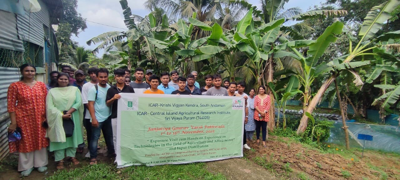 The Governance and Institutional Strengthening under the tuhet farming system was discussed among the tribal farmers from Nancowrie Islands at ICAR-CIARI, Sri Vijaya Puram on 09.11.2025 at its research farm. There were 16 tribal farmers were participated in the program. Establishment and renovation methods of vermicompost production unit in the farming area and the methodology were discussed for maximum vermicompost production by using various residues collected from the farm. Also we discussed the sale of vermicompost by farming the tribal farmers group to improve their livelihood. Further discussed the farmers group benefits and functioning mechanisms for preparing and selling of farm products under the name of the Nicobar products.