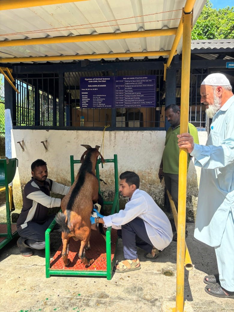 The Division of Animal Science, ICAR-CIARI, Sri Vijaya Puram, successfully conducted a five-day customized paid training programme on "Scientific Goat Farming" from December 2 to December 6, 2024. The programme was tailored for farmers and stakeholders interested in starting goat entrepreneurship based on scientific methods and practices. A total of seven participants attended the training. The programme aimed to equip participants with knowledge and skills in areas such as goat breed selection, nutrition management, reproductive management, disease prevention, modern housing systems, sustainable goat farming techniques, and preparing for commercial goat farming. A special highlight was the hands-on practical sessions, enabling farmers to gain real-world experience in scientific goat farming practices.