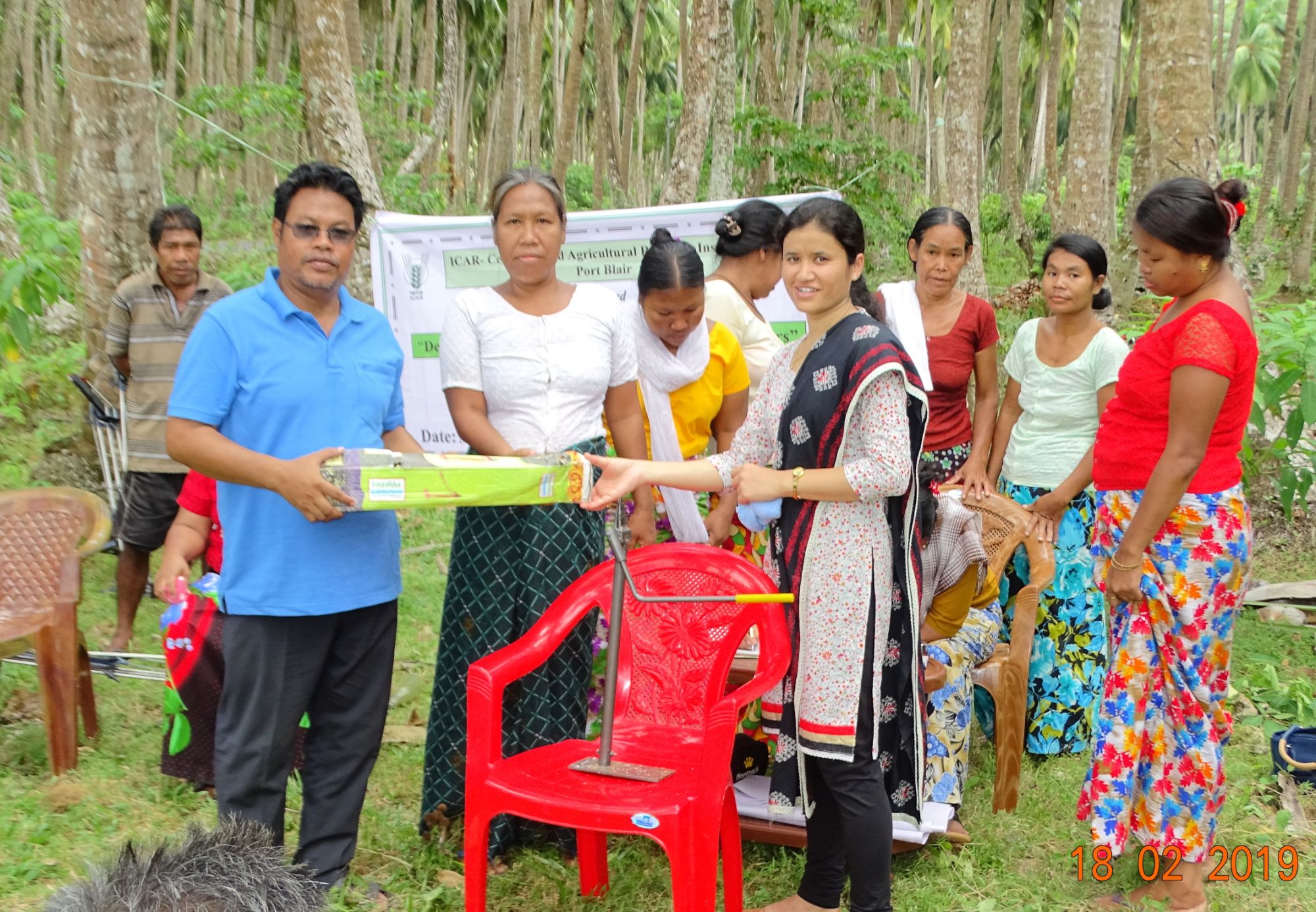 Most of the Nicobarese farmers of Harminder Bay are now well versed with the climbing and dehusking operations, which is an indication of skill development through interventions. Distribution of these devices to more farmers would be continued for creating livelihood opportunities for the native inhabitants of these islands.