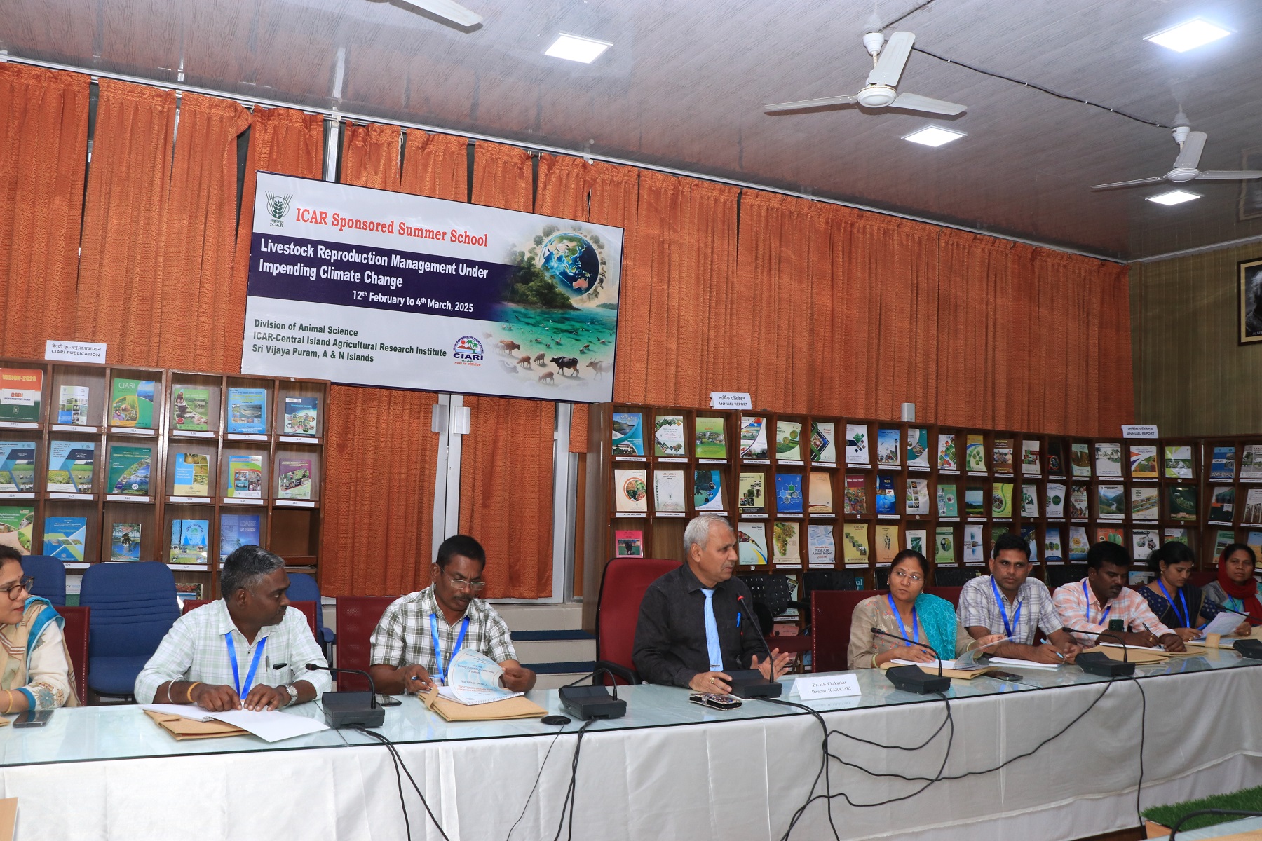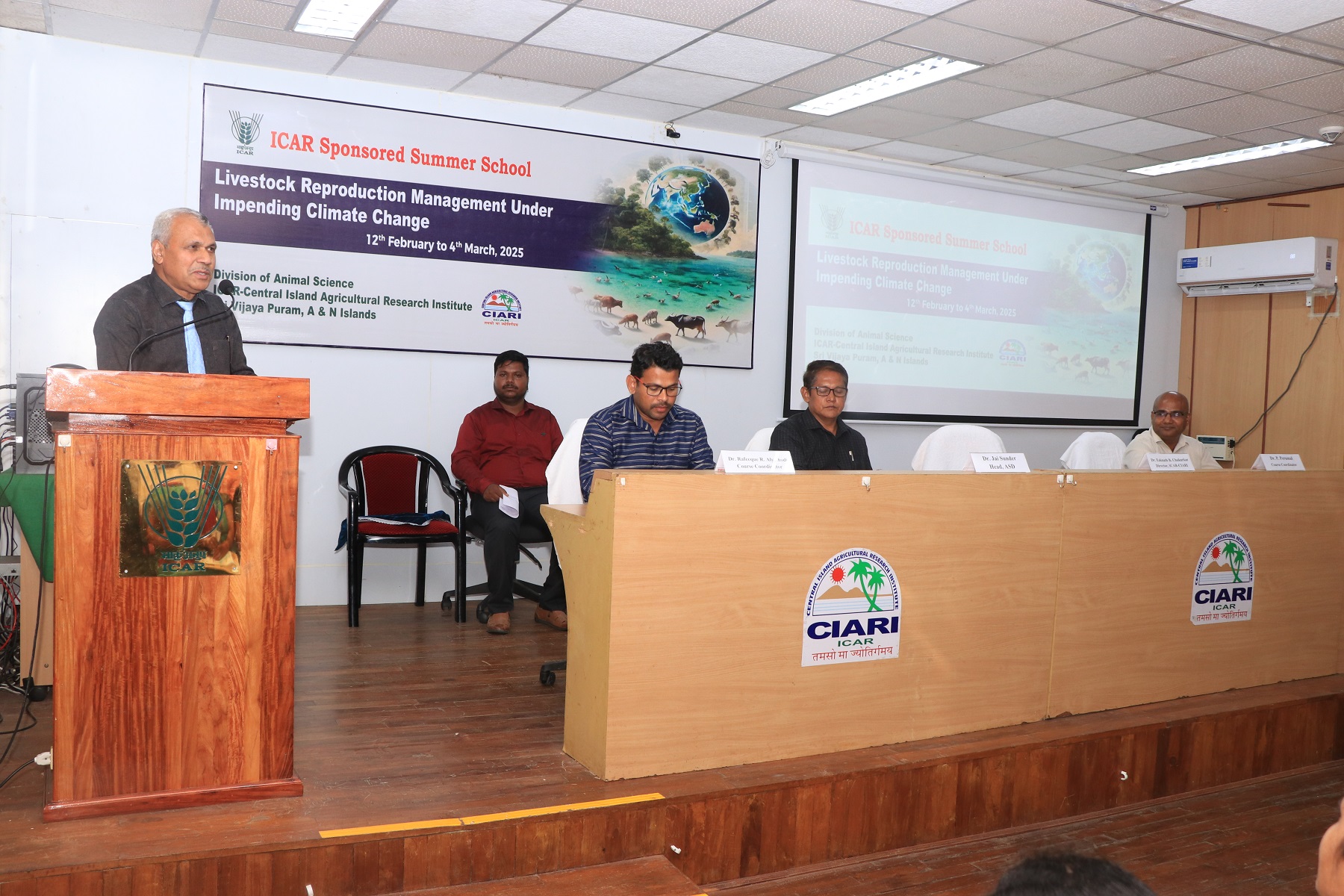 ICAR-Central Island Agricultural Research Institute (ICAR-CIARI), Sri Vijaya Puram inaugurated a 21-day ICAR-sponsored Summer School on “Livestock Reproduction Management Under Impending Climate Change,” scheduled from February 12 to March 4, 2025. The program was formally inaugurated by Dr. Eknath B. Chakurkar, Director, ICAR-CIARI. The training aims to equip participants with a multidisciplinary approach, integrating reproductive management strategies with advanced biotechnology techniques to develop mitigation strategies for enhancing livestock reproduction. Participants will explore innovative techniques and practical solutions to optimize reproductive performance while addressing the challenges posed by climate change. Hands-on training in biotechnological tools used in livestock reproduction will also be conducted.